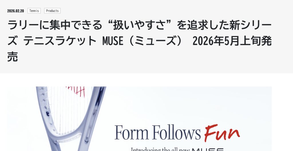 さて、「扱いやすさ」と「ラリーの快適さ」を謳う2026年の新作といえば、YONEXから5月に発売予定の『MUSE(ミューズ)』シリーズも忘れてはいけません。