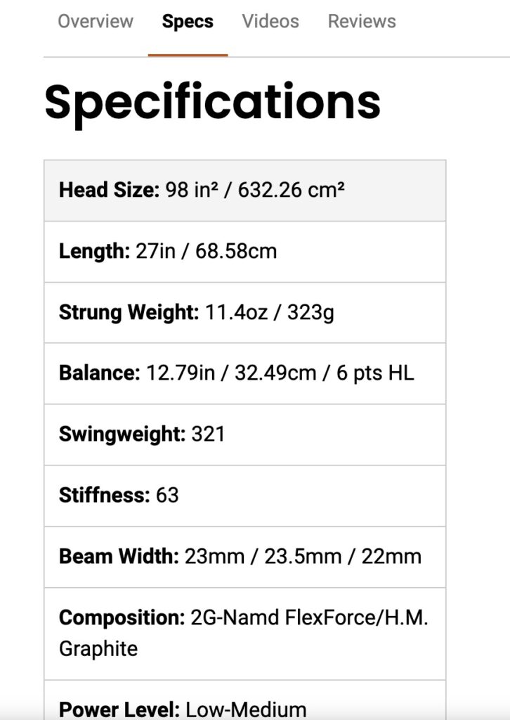 誤解のないように補足しておきますが、Vコアが特別硬いラケットだと言いたいわけではありません。https://www.tennis-warehouse.com/Yonex_VCORE_98_8th_Gen/descpageRCYONEX-VC988G.html